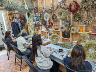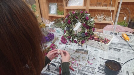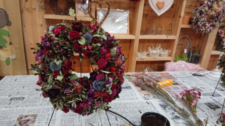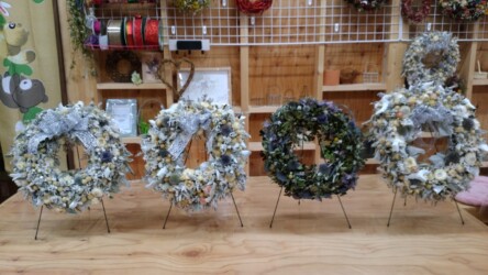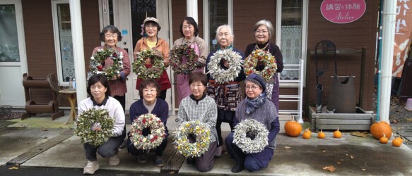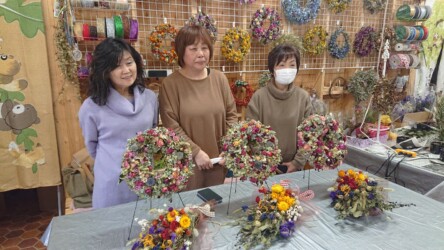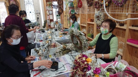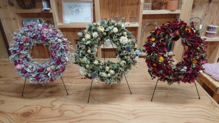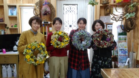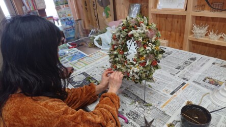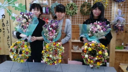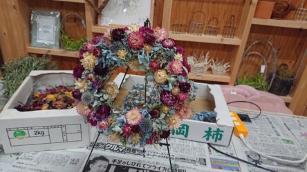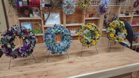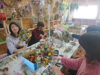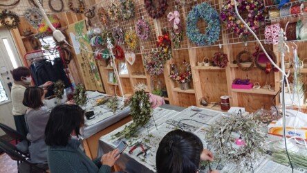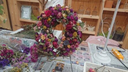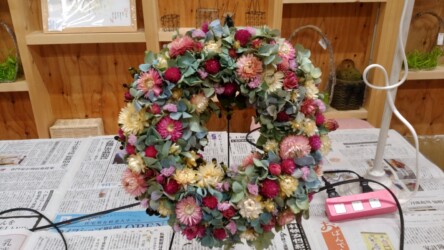 花工房あやでは、リース・ハーバリウム制作などご要望に応じたアレンジメント体験教室を開催しております。