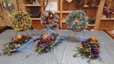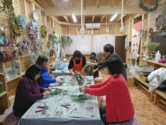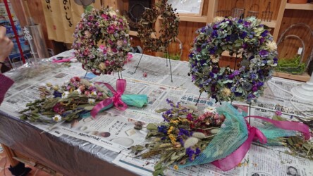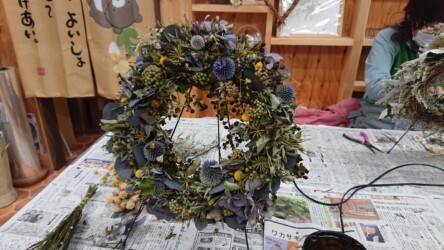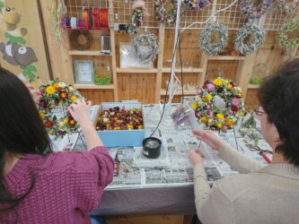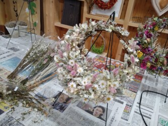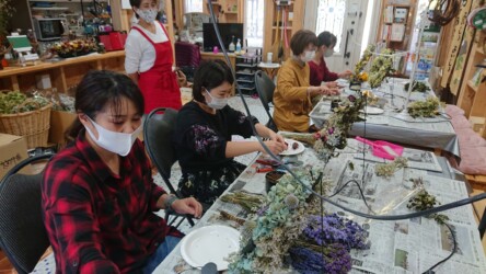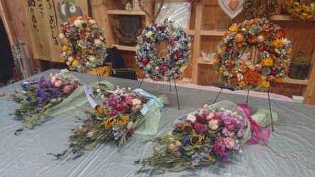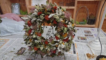 教室での制作にあたり事前にご要望をお聞きして、お花等をご用意致します(当園で栽培・自然乾燥させたドライフラワーをふんだんにお使いいただきます)。